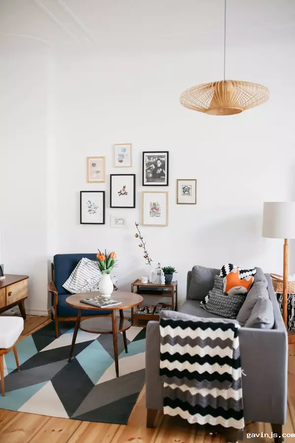 当做好日式的硬装后,就可以加入北欧风格的家具了。软配上增加了一些北欧元素,色彩丰富的地毯、毛毯、抱枕,灯具,使空间变得丰富活泼。