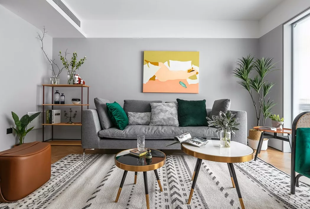 北欧风格和日式风格最直观的区别就是他们的色彩。北欧风色彩丰富,多见于在简洁色调的基础上运用丰富的点缀色,最终达到高饱和度、张扬的效果。通过小面积对比强烈的色块,来实现视觉焦点。