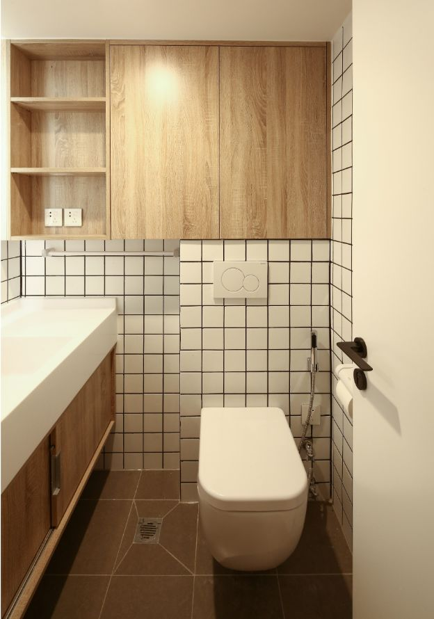 如果你想要较多的收纳空间,用“木色+白色”定制柜体也是个不错的选择,通透开阔且不失温柔。